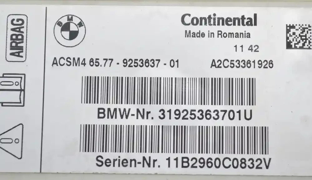 65779253637 блок управления AirBag (SRS) BMW 5 F10 F11 2011 б/у: Ваш надежный выбор от Интернет-магазина Airbag Parts.